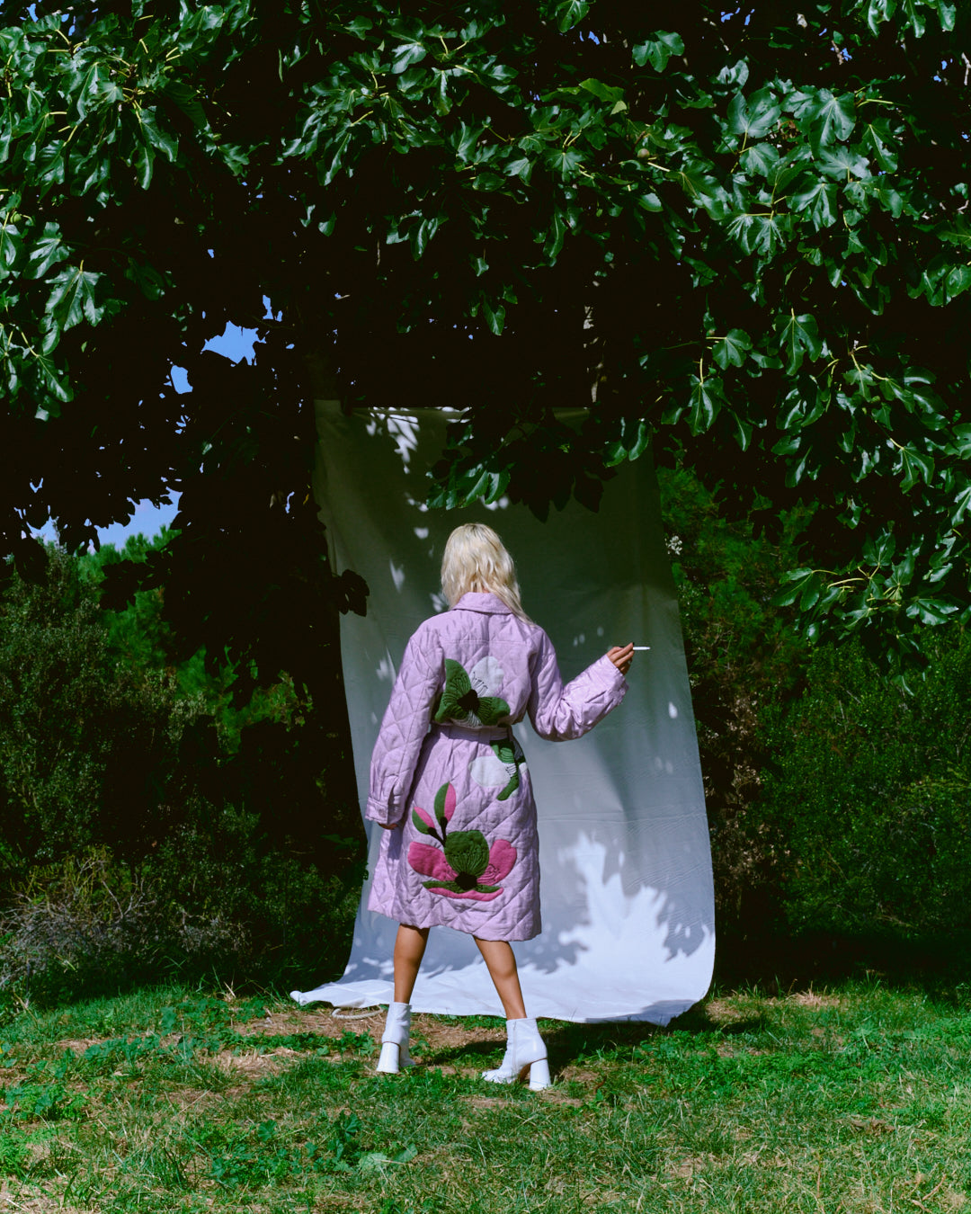 Oversized long coat in soft purple with a belted waist and classic collar. Designed for relaxed silhouette that adds effortless charm to any outfit. This statement pieces combines playful color with padded design. Wear it open with laid-back vibe or tied for a more structured look.
